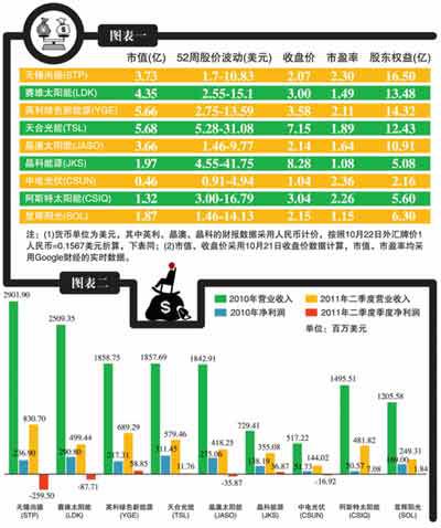 2010年,中国光伏电池的产量达到8GW,约占全球总产量的一半,列表中的9家企业则是中国光伏产业的主力军团,占据了国内产量的大半,但是,其市值加总不过25亿美元左右。