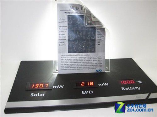 索比光伏网讯:友达光电在日本横滨召开的国际平面显示器展上公开发布了一款完全以太阳能驱动,可弯曲卷起的6英寸有机TFT电纸书,分辨率为SVGA级别(800×600)。