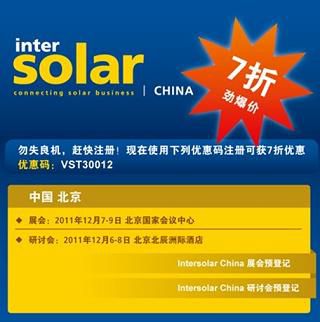 本届IntersolarChina将于2011年12月7-9日于北京国家会议中心举行,与2008年奥林匹克体育场——“鸟巢”相对而望。同期研讨会活动开始时间为12月6日,地点设在紧邻国家会议中心的北京北辰洲际酒店。
