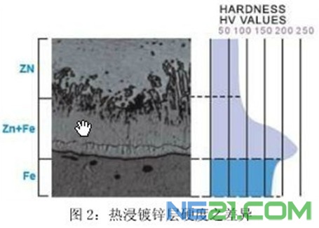 2.坚硬度:最外层之纯锌层相对较软及可以吸去大部分的撞击力,而底部之锌铁合金层则非常坚硬,甚至比钢材本身更坚硬,此组合为钢材提供了强硬和耐磨的保护层。
