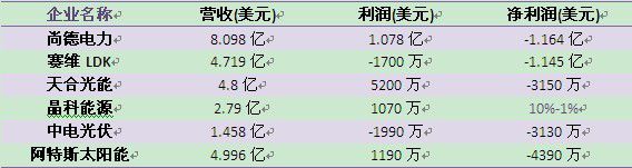 目前,仅有晶科能源(JKS.NYSE)利润为正,该公司第三季度的营收为2.79亿美元,同比上扬了23.8%;净利润为1070万美元,但该数字相比去年同期也有73.8%的大幅下挫。