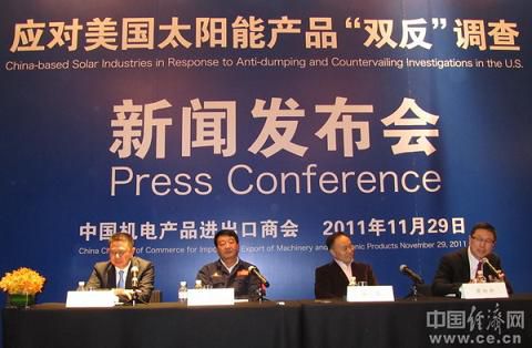 昨日由中国机电产品进出口商会牵头,英利、尚德、天合、阿特斯等国内光伏企业巨头参加的应对美国太阳能产品“双反”调查的新闻发布会在北京召开。