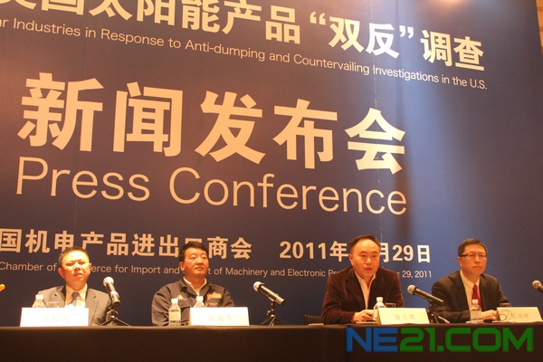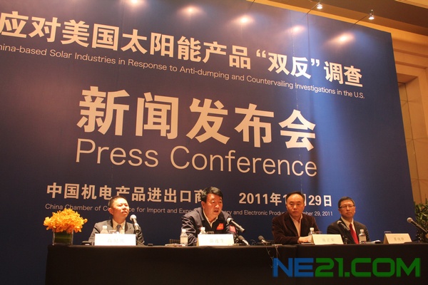 21世纪新能源网记者孙巍现场报道,29日15:30分,中国14家光伏企业在京集体向媒体召开新闻发布会,应对美国太阳能产品“双反”调查。