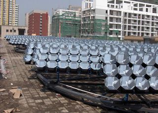 今年1月,由青岛哈工太阳能股份有限公司建设的200千瓦高倍聚光太阳能示范电站并网发电,这是国内第一个按照商业化运营建设,且并网发电、投入运营的高倍聚光太阳能电站,也是目前国内转换率最高的并网太阳能发电站。目前,其平均发电成本0.62元/千瓦时,基本达到设计要求。青岛哈工太阳能研究院院长杨书华介绍,从理论上讲,放大倍数越高,芯片的材料就越节省。一块用在聚光光伏发电上的电池,其造价是晶硅电池的100倍。不过,如果透镜与电池之间的倍数能超过300倍的话,那么,聚光电池的成本也就与晶硅电池的成本持平了。所以,各企业都在研究放大倍数更高的聚光光伏产品,这样可以节省更多的材料。
