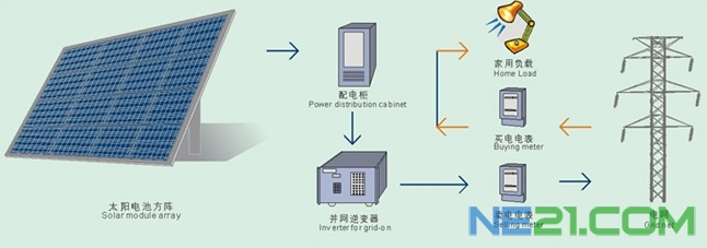 创动科技可提供专业MW级电站咨询服务,在设计过程中充分考虑到占地计算、场地、基础、机房、围栏等问题,以提高客户光伏电站的发电效率。是指与公共电网相联接且共同承担供电任务的太阳能光伏电站。它是太阳能光伏发电进入大规模商业化发电阶段、成为电力工业组成部分的重要发展方向,是当今世界太阳能光伏发电技术发展的主流趋势。并网系统由太阳能电池方阵、系统控制器、并网逆变器等组成。 并网光伏发电系统概要图