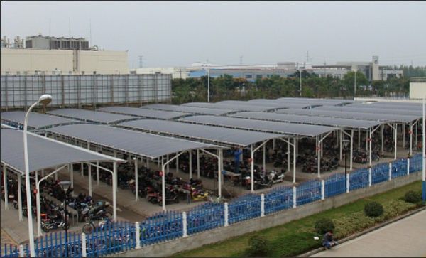 索比光伏网讯:天合光能(NYSE:TSL)近日宣布与Xunlight合作的220KW薄膜光伏" title="光伏新闻专题">光伏系统已建成。该光伏项目利用柔性薄膜电池在环境应用中的优势,将其安装在停车场和自行车车棚上,并已申请国内金太阳光伏示范工程。