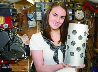 太阳能冰箱在纳米比亚,人们称EmilyCummins为“冰箱小姐”。这是因为她发明了一款太阳能的冰箱,用来帮助穷苦的非洲人。这种太阳能冰箱的工作原理是两个圆筒,一个大圆筒套着一个小圆筒,内筒是金属的,外筒是木头或塑料的。两个筒之间充塞着沙或土,在使用时用水把沙土浸湿。当太阳的热量蒸发了夹层中的水时,水蒸气同时也带走了内筒的热量。这就使得内筒内的温度保持在6摄氏度左右。在非洲,奶和肉之类的易腐蚀的食物是非常紧缺的,因为它们在这片既炎热又缺少电能的土地上只能保存几天。但是“冰箱小姐”的小发明却改善了这种情况,可以想象她为非洲人民造了多少福。