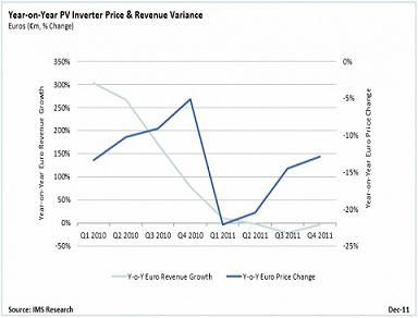索比光伏网讯:据IMS市场调研公司所公布的一份最新调查报告显示,全球光伏" title="光伏新闻专题">光伏逆变器市场所遭遇的困境似乎与德国市场有着直接的联系。光伏逆变器市场在2011年的第三季度内出现了超过20%的年度同比跌幅,而通常较为稳定的德国市场所出现的50%年度同比光伏收益额下跌幅度则是造成这一状况的主因。
