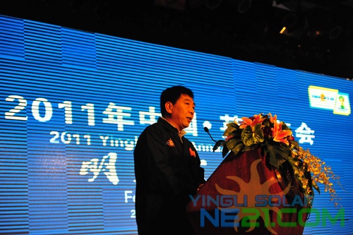 上午10点,在回顾英利一年成就的短片之后,“2011•中国英利年会”正式开始,集团总经理海南产业基地总指挥王向东发表了年会致辞。他向各位客人的到来致谢,他表示,在光伏行业寒冬时期,此次年会具有多方面的意义。通过年会希望将英利集团近期以来的一些信息传达给大家,与大家共同分享市场信息。他还说到,虽然目前行业遇冷,可是过冬不能只靠御寒,自身强健才是王道。王总的讲话向与会人员传达出了积极的信号和英利战胜寒冬的坚定信心,现场响起热烈的掌声。