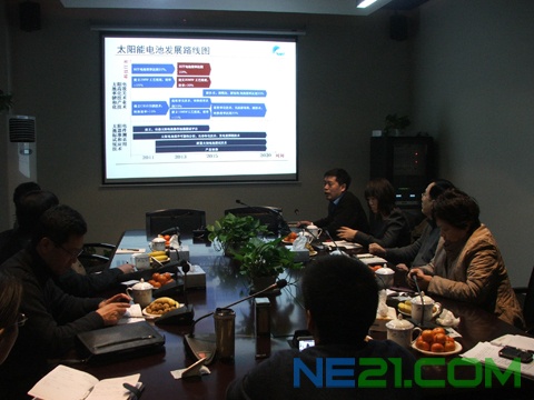 会上刘正新主任介绍了新能源技术中心的建设进展、科研研究进展,以及与相关企业合作的模式等。