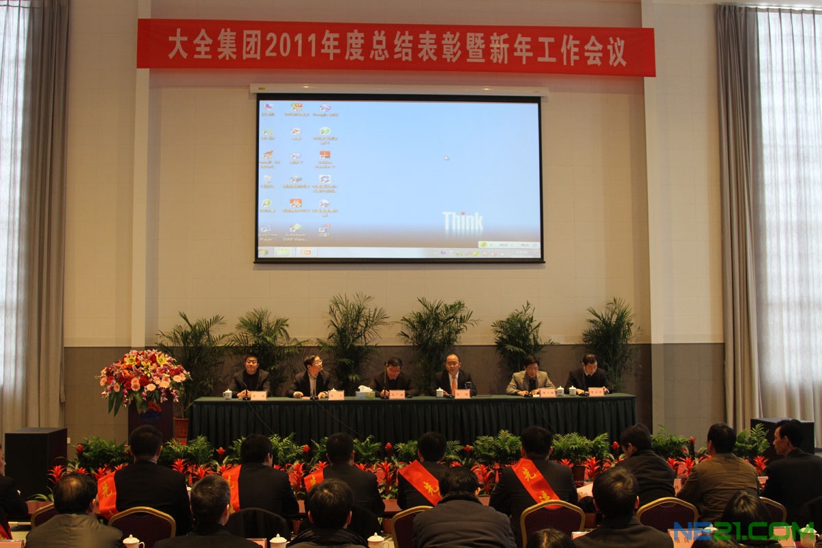 1月18日下午,大全集团2011年度总结表彰暨新年工作会议在大全科技园多功能厅隆重召开。大会回顾总结2011年工作中取得的成绩和经验,规划2012年的发展目标;表彰在2011年工作中涌现出的先进集体和先进个人;动员、鼓舞全体员工继续发扬“诚信、敬业、创新”的精神,齐心协力,奋发图强,再创大全新的辉煌。集团领导徐广福、徐翔、葛飞、施大峰、蔡斌、蔡金洪在主席台就座。会议由副总裁施大峰主持。集团公司部门总经理助理以上人员、各制造公司部门经理以上人员、扬中地区公司的先进科室/班组代表、先进个人代表出席了大会。集团总裁徐翔作了《齐心协力、奋发图强,再创辉煌》的工作报告。