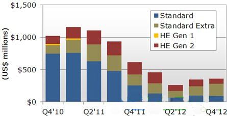 同时,光伏设备厂商正急切地寻求技术采购订单,以减轻2012年的收益衰退,并为2013年优先推出的设备提供清晰的指引。