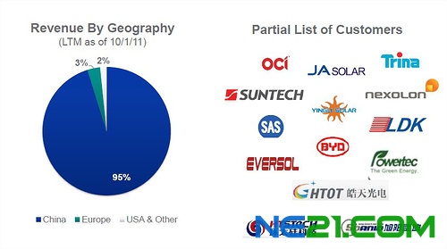 公司主要业务集中在中国,主要客户为国内的光伏厂商。