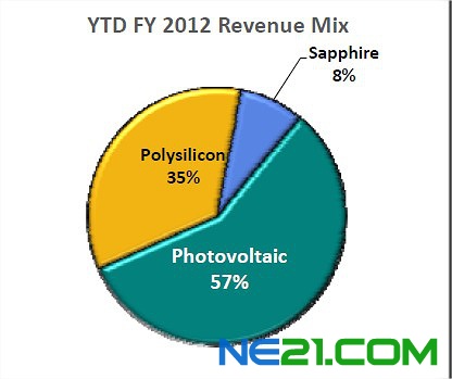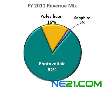 光伏,多晶硅,蓝宝石设备供应商。相比光伏厂商,日子相对好过一些,竞争压力相对小一些(类似于淘金热时代卖铁镐铁铲帐篷的),但是光伏厂商目前日子都不好过,所以GTAT的光伏设备销售在CY2011大幅下滑,并且预计在未来几个季度内还将继续下滑。多晶硅技术主要为了提高电池转换效率,技术相对领先,但是在整个光伏行业不景气的大环境下,销售依然面临压力。蓝宝石业务是新收购的业务,目前在转型期,为公司的重要增长点,目前的销售额相对很小,但是增长势头不错。