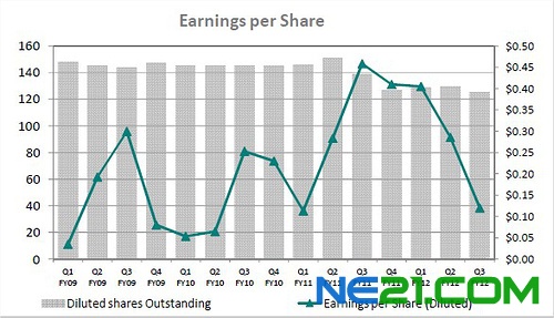 但由于Q1-Q3销售额持续下滑,导致每股收益下滑很厉害(不过,利好消息是超出了华尔街预期)