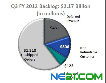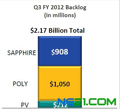 Q3末期的BACKLOG还不错,有2.7B的Backlog,几乎一半的业务已基本锁定。所以,未来的业绩下滑风险不是很大。从Backlog数据看,蓝宝石业务增长潜力很大,而光伏设备在快速萎缩(这与目前的整体行业不景气,光伏厂商生存困难有很大关系)。