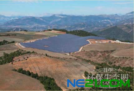 新风景之一位于法国南部马赛港以北约120公里一个拥有4000人口的村庄“Les Mees”。这里正在形成一个巨大的光伏发电中心,70公顷的土地上铺有11270张面板,发电量达到50兆瓦。该发电站建在400米高的丘陵上。