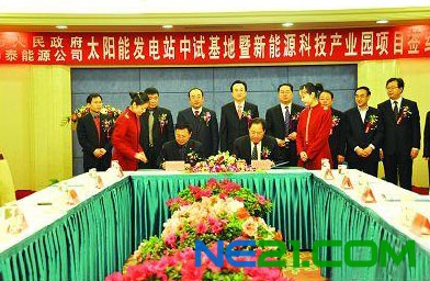 Ne21.com讯,2月8日由青岛神泰能源技术开发有限公司与山东平度市合作共建太阳能热气流发电站项目已正式签约。项目总投资16亿元,注册资金1亿元,分三期建设。今年年底将完成一期工程建设,到2013年年底,所有规划项目将完成并进入性能试验运行阶段。预计发电站建成后,年可发电2.2亿度将有效缓解平度南部用电压力。