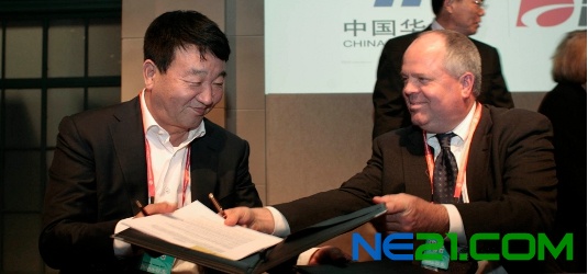 签约现场:英利苗连生(左)和杜邦公司大卫·米勒(右)