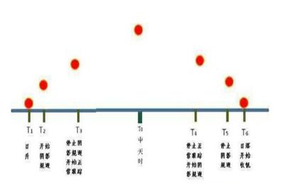 其中T2,T3及T4,T5是随日期的变化而变化,因此跟踪系统软件算法都会计算出当天的日出开始阴影规避时间T2和日出停止阴影规避时间T3,日落开始阴影规避时间T4和日落停止阴影规避时间T5。