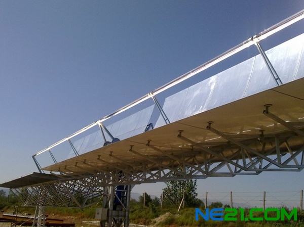 近日,由中国科学院电工研究所皇明太阳能联合实验室研发的,槽式抛物面太阳能集热器在广州中山大学工学院安装成功,并于顺利通过中山大学节能技术研究中心组织的专家验收。此槽式集热器采用齿轮箱传动,结构简单,易控制,能准确跟踪太阳,跟踪精度±0.1°。此槽式集热器采用了由中国科学院电工研究所和皇明太阳能股份有限公司联合研制的高精度抛物面反射镜和高效槽式集热器真空管。