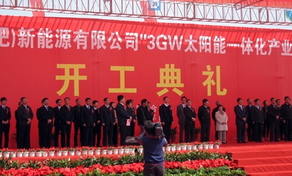 晶澳公司首席执行官方朋介绍说,合肥基地项目总投资135亿元,占地2250亩。昨天投产的一期项目,建设组件产能规模为500MW,当年可实现产值近30亿元人民币。晶澳太阳能从去年4月份开工到建成,仅仅用了10个多月的时间,一期就顺利投产。