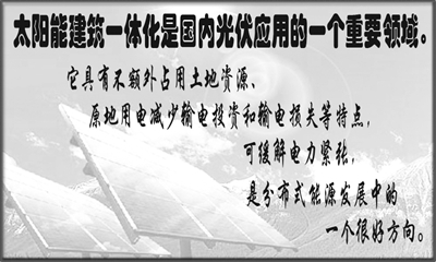 此外,太阳能建筑一体化也是国内光伏应用的一个重要领域。它具有不额外占用土地资源、原地用电减少输电投资和输电损失等特点,可缓解电力紧张,是分布式能源发展中的一个很好方向。2011年,汉能集团相继投产了四川双流、广东河源、浙江长兴等基地,今年将形成2GW产能。