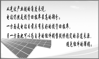 从光伏产业链的角度来说,电站仍然是投资回报率最高的部分。目前,大部分的组件企业开始在海外进行电站投资,一方面是电站目前具有良好的投资回报率,另一方面也可以为自身的组件销售提供稳定的渠道来源,避免组件的滞销。开拓国内市场,光伏电站投资仍是重要途径。当然,这需要国家在光伏发电上网政策上给予更多实质上的帮助。