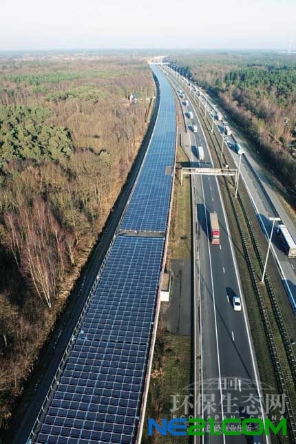 | 比利时高速铁路(LGV4)长达3.4公里的隧道上铺设了光伏电池板 |