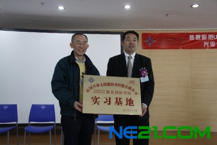 来源:发布时间:2012-02-27 23:59:59 索比光伏网讯:2月23日,兴业太阳能与北京师范大学-香港浸会大学联合国际学院(简称UIC),举行了共建实习基地签约仪式。集团行政总监熊湜在仪式上发表讲话,“产学结合,校企合作”可以实现学校和企业的优势互补,共同培养社会与市场需要的人才。
