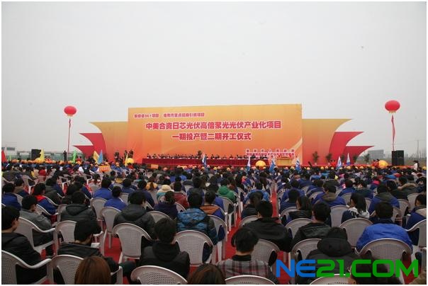 图为中美合资日芯光伏高倍聚光光伏产业化项目一期投产暨二期开工仪式现场。