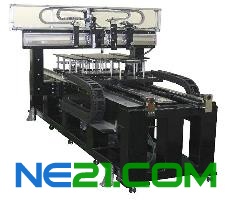 恩梯恩开发出了在薄膜太阳能电池面板的制造工序中利用激光对电极等进行沟槽加工的激光划片机。该设备的划片范围达到1400mm×1100mm,可加工薄膜太阳能电池的大尺寸面板基板。同时,与原来的大型承载台设备相比,该设备的承载面板基板的承载台部分的重量减轻了约50%。另外还提高了轨道支架的刚性,因此可抑制高速运动时的振动。处理速度最大为3000mm/s,加速度为2.0G。平直度误差为±10μm以下。