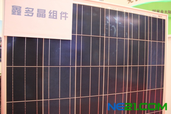 展会现场保利协鑫展出高效多晶硅片“鑫多晶”。据保利协鑫销售人员向世纪新能源网介绍鑫多晶硅片效率达到17.6%,与普通多晶硅片相比,鑫多晶优化了微观结构,精确控制了位错、层错、晶界等晶体缺陷,并且鑫多晶将帮助光伏发电成本降低2%以上。