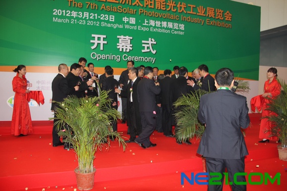 3月21日,Asiasolar 2012 第七届亚洲太阳能光伏工业展览会暨论坛在中国上海世博展览馆隆重开幕,展会由全国工商联新能源商会(CNECC)、中国机电产品进出口商会太阳能光伏产品分会与中国国际贸易促进委员会(CCPIT)权威主办,上海艾展展览服务有限公司(AiExpo)专业组织,并得到国家四部委及十多个国内外行业组织的支持 。