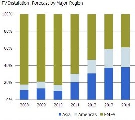 IMS Research预测,未来两年内亚洲和北美地区将占全球光伏市场的较大份额