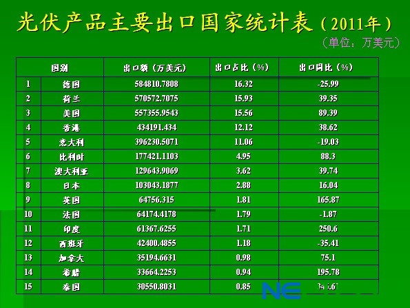世纪新能源网(记者张松)报道,在日前闭幕的Asiasolar 第七届亚洲光伏论坛上中国机电产品进出口商会光伏分会秘书长孙广彬老师,发表题为《2011-2012年 中国光伏产品进出口分析 及经贸形势预测》的演讲,孙广彬老师表示2011-2013年 我国光伏产品国内市场将持续增长,以下是演讲稿实录: