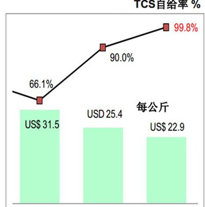 (TCS自产率提高使多晶硅生产成本下降,来源:保利协鑫2010年度业绩报告)