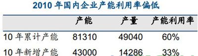 (2010年国内多晶硅企业的产能利用率,来源:长江证券《OCI与保利协鑫成本下降之路》)
