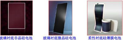 主要包括:a-Si:H电池、a-Si:H/a-Si:H双结电池、a-Si:H/μc-Si双结电池、a-Si:H/a-SiGe:H双结或三结电池等。