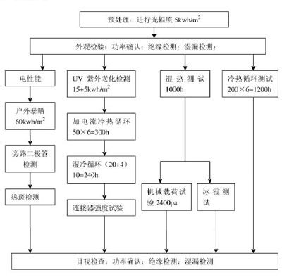 2.1.2重测项目:高低温循环;湿热;热斑测试;机械载荷(如果电池片厚度减小或厂家改变);反向电流过载;湿漏测试。