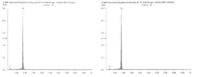 对于多晶,比单晶多一种造成线痕的原因,那就是硬点。硅片硬点缺陷处的形貌显微照片和硅片基体形貌显微照片;硅片硬点成分能谱图,能谱显示该硬点。