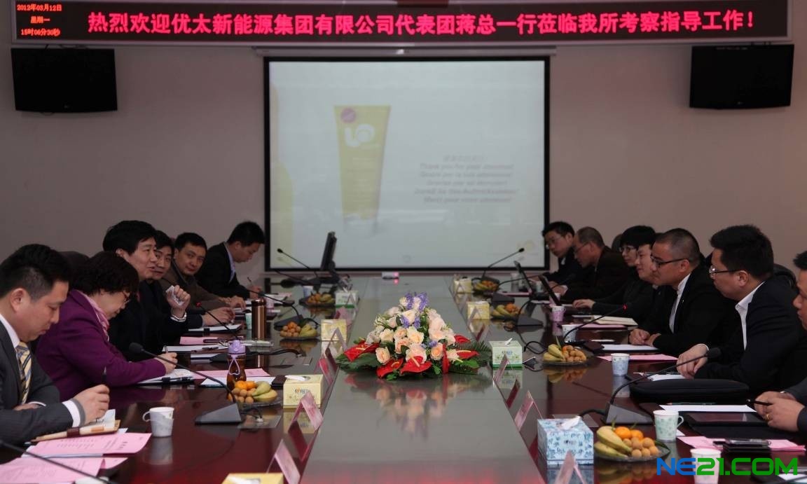 来源:第四十八研究所发布时间:2012-04-18 23:59:59 索比光伏网讯:3月12至13日,优太新能源集团有限公司首席执行官蒋喆率领由总经理、供应链及采购总监、业务总监、营销总监等组成的高级代表团访问中国电子科技集团公司第四十八研究所。第四十八研究所所长刘济东、副所长郭建辉及营销部有关人员热情接待和会谈。