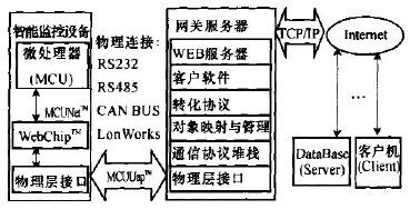 网络控制器WebChip使用MCuNet和MCuuap协议通过Internet实现对下位机采集系统的直接控制。WebChip(如PS2000A)与MCu之间的通信基于MCuNet1.0协议。该协议是一个比Udp更简单的网络协议,它从4个方面定义了MCuNet与MCu之间的通信方法。WebChip的PS2000A芯片与网关服务器间的通信基于MCuuap1.0协议,可将WebChip中的设备属性表映射到WebChipmBeddedServerMCuuap1.0协议支持RS232、RS485、Modem3种物理层通信接口。WebChipmBeddedServer是符合OSG标准的网关服务器,具有低成本、易开发使用、基于Java技术、可跨OS平台进行以及可嵌入式特点。其运行的平台可以是PC机,也可以是STB、DSL、MODEM、CABLEMODEM、WEBPHONE和移动电话。它除了在设备与网络间担当协议转换任务外,还具有完善的设备管理、客户管理和监视功能。
