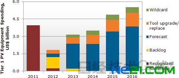 另外,Solarbuzz预计太阳能电池厂商的制造装置投资额将在2012年第二季度触底,并在2013~2016年保持高的增长率。