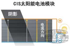 如此一来,在部分面板受到遮挡时,CIS太阳能电池与结晶硅类太阳能电池在发电能力上就会产生很大的差异。