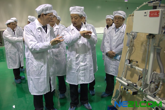 谢超英主任一行深入光伏太阳能电池车间现场指导工作。他详细听取了李延凯博士的项目建设及产品升级规划等情况,并现场分析探讨产品相关问题。谢超英主任表示,省经信委将继续关心、关注光伏产业的发展现状,通过各种方法手段,联合相关部门,积极打造光伏产业发展环境。同时,企业自身要不断创造新的经验,尤其是要将信息化和工业化深度融合,不断构筑新的竞争优势。
