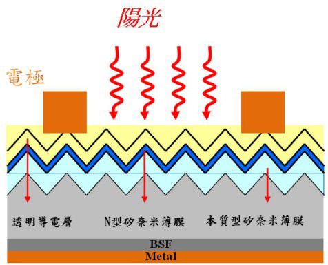 HIT太阳能光伏电池基板以硅基板为主;在硅基板上沉积高能隙(Energybandgap)的硅奈米薄膜,表层再沉积透明导电膜,背表面有着背表面电场。通过优化硅的表面织构,可以降低透明导电氧化层(TCO)和a-Si层的光学吸收损耗。HIT太阳能光伏电池抑制了p型、i型a-Si的光吸收率,而增强n型c-Si的光吸收率。