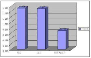 图2 某供应商硅锭未经机械研磨或化学抛光的硅片在电池线生产的平均碎片率约为1.5%左右,而其硅锭经过机械研磨之后的硅片,平均碎片率仅为0.7%,降低了一倍多。