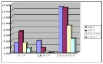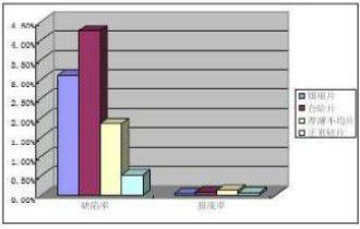 如图3、4所示,锯痕、台阶和厚薄不均片的碎片率、电极不良率和总报废与不良率均明显高于正常硅片,其中总报废与不良率比正常硅片高了4%-10%。