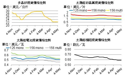 由于众多欧洲国家第三季面临补助调降,欧洲市场的抢安装需求热涨,使5月太阳能发电市场供需可维持平衡,组件与多晶硅报价已连续2~3周止稳,使硅晶圆与电池的价格趋稳定,供应链虽可见到出货量显着增加,但价格仍欲振乏力。